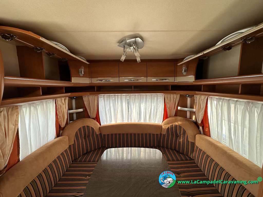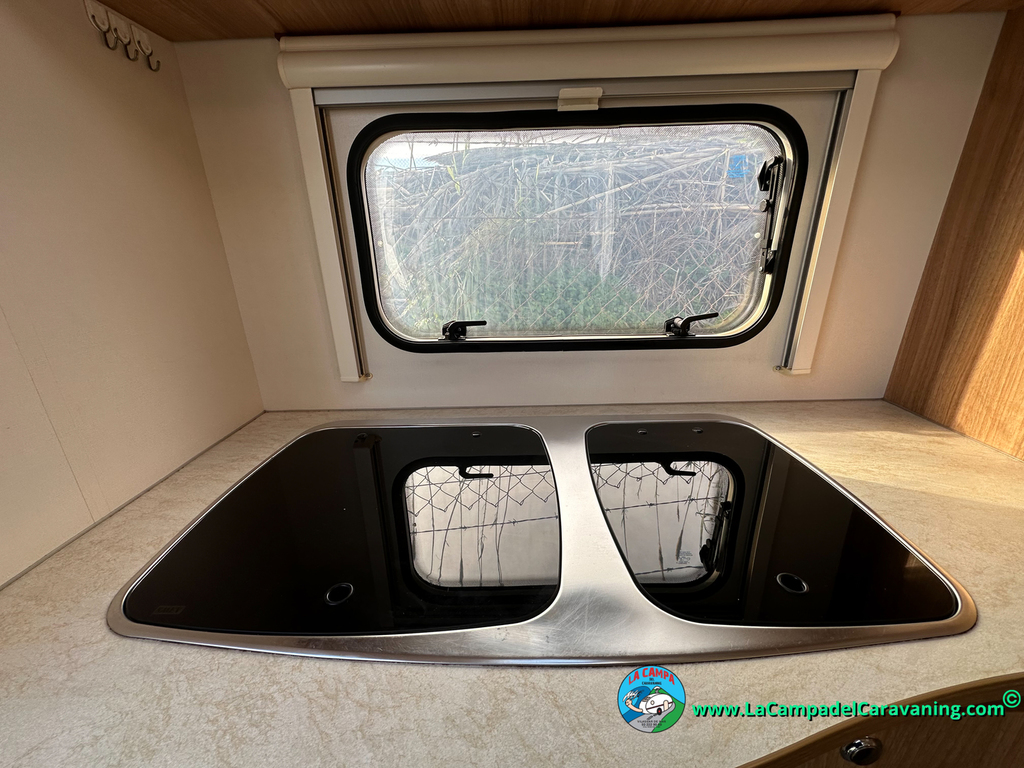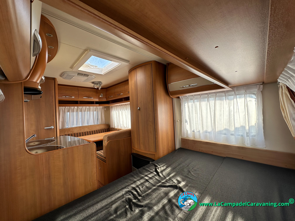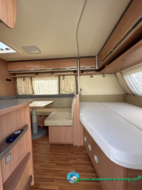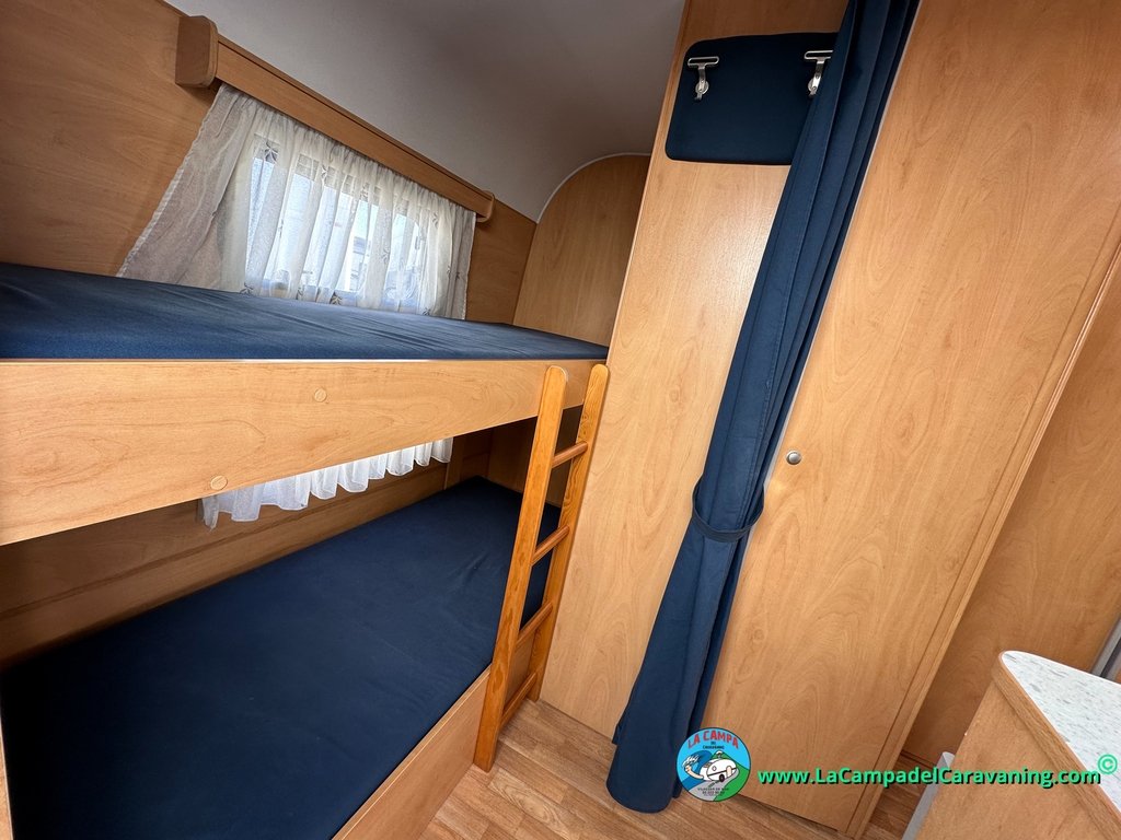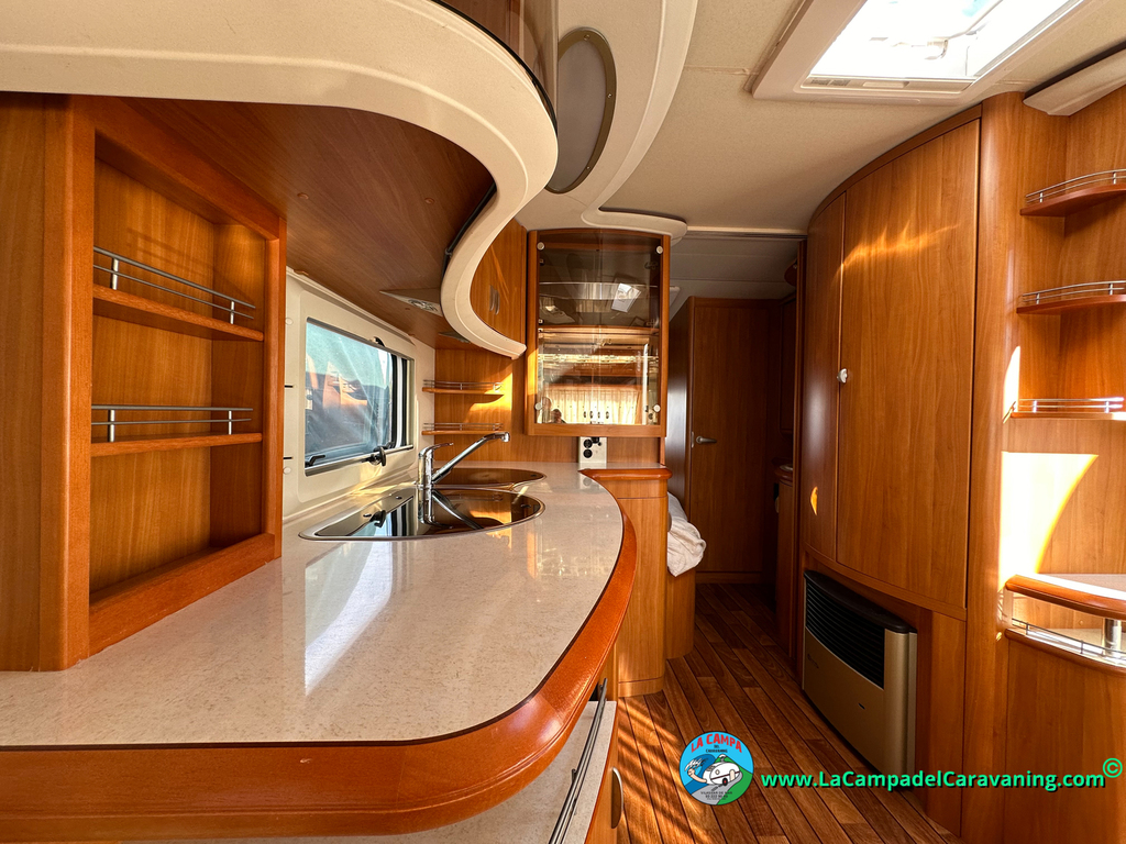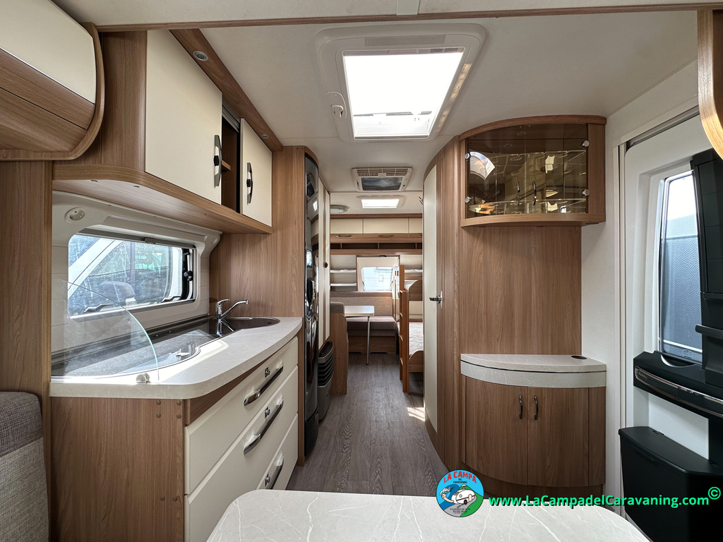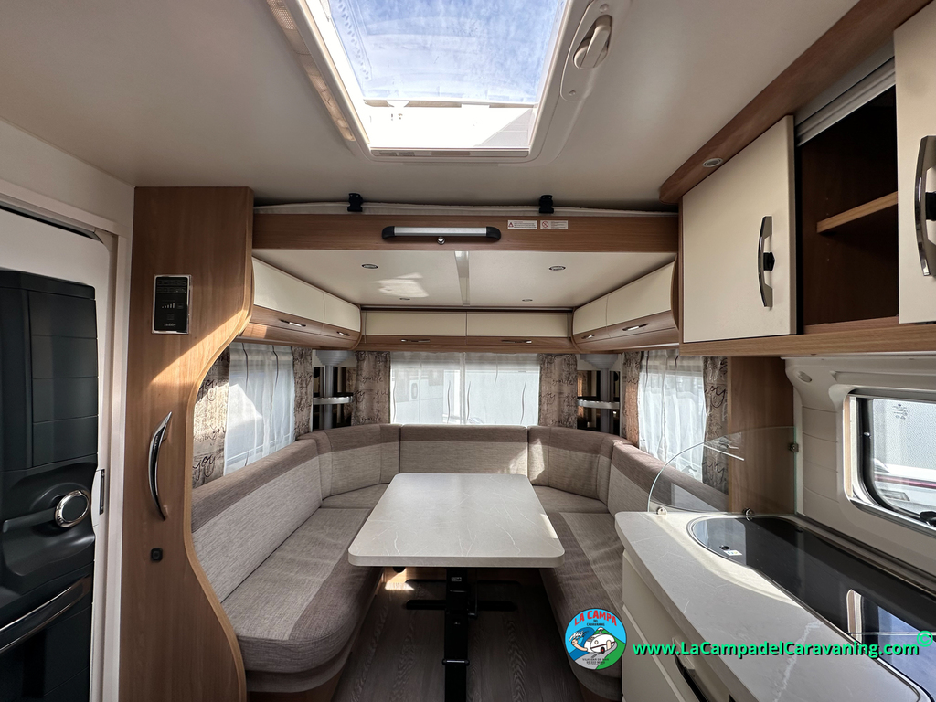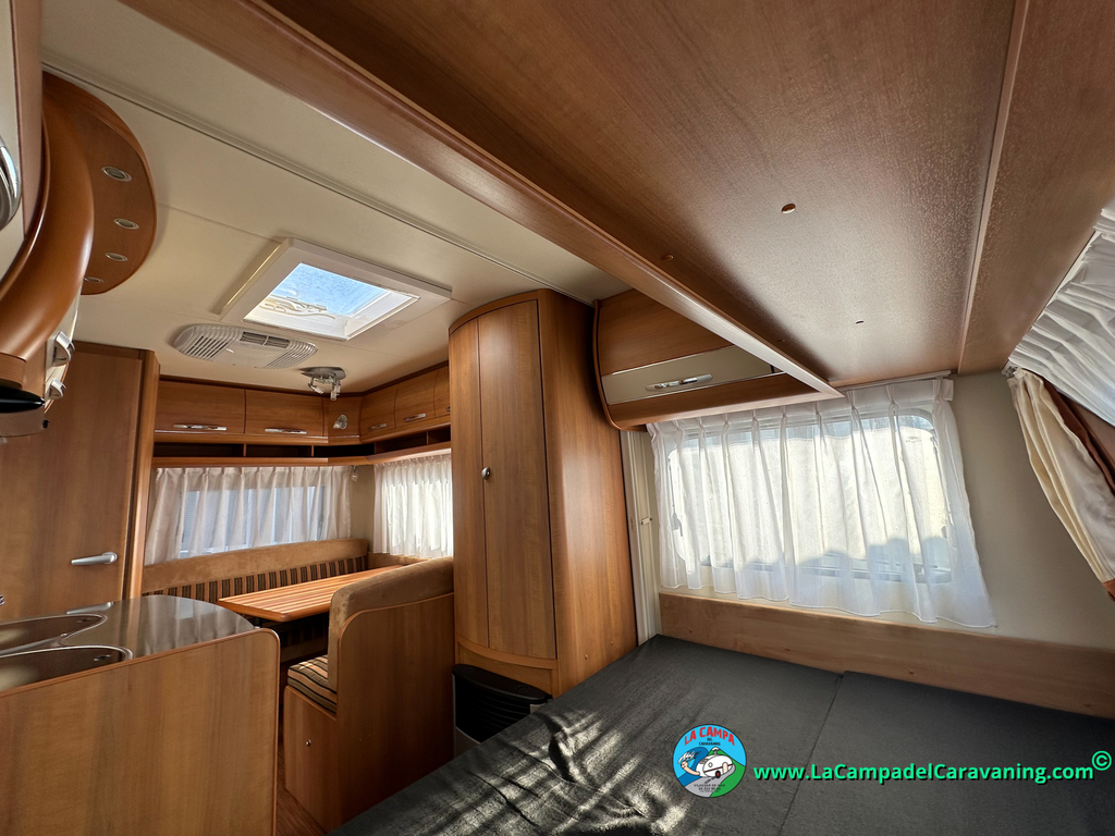 Nevera trivalente con congelador, WC químico, ducha semindependiente, antena TV, microondas, calefaccion con distribución por conductos, 2 claraboyas (1 panorámica), mosquitera en puerta de entrada, estabilizador Alko.