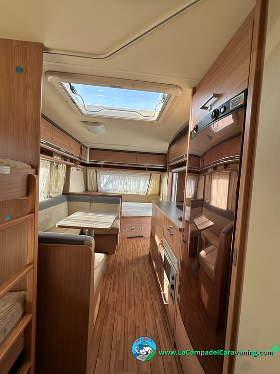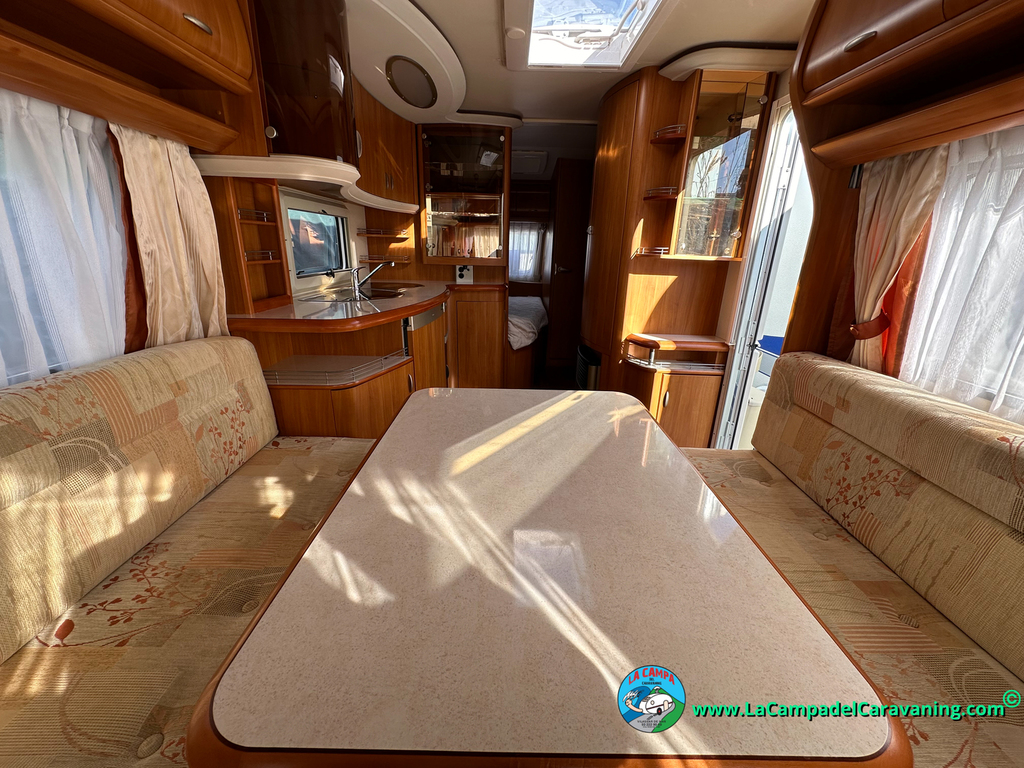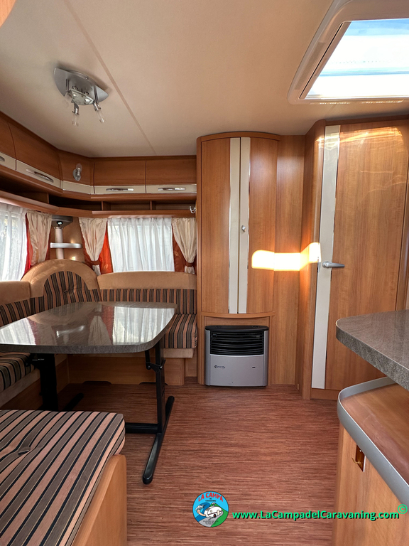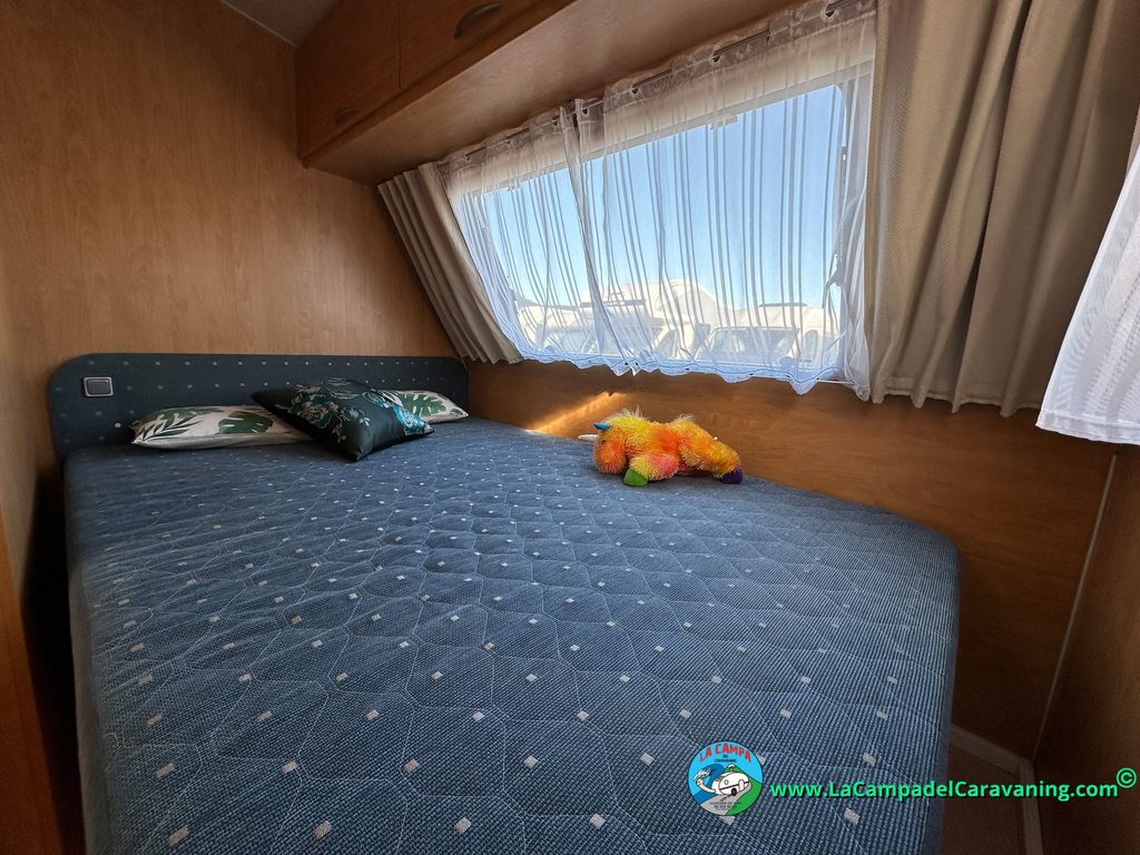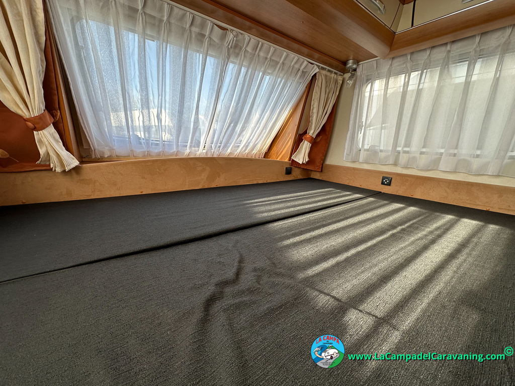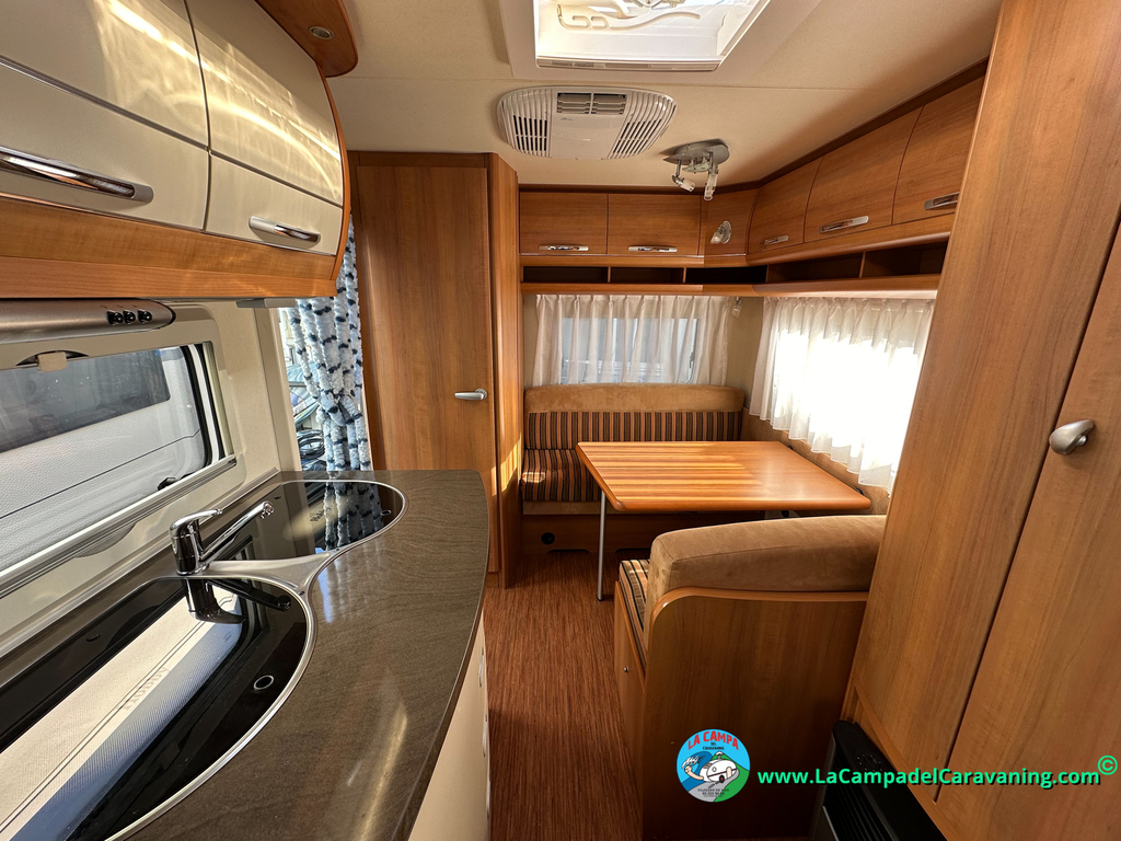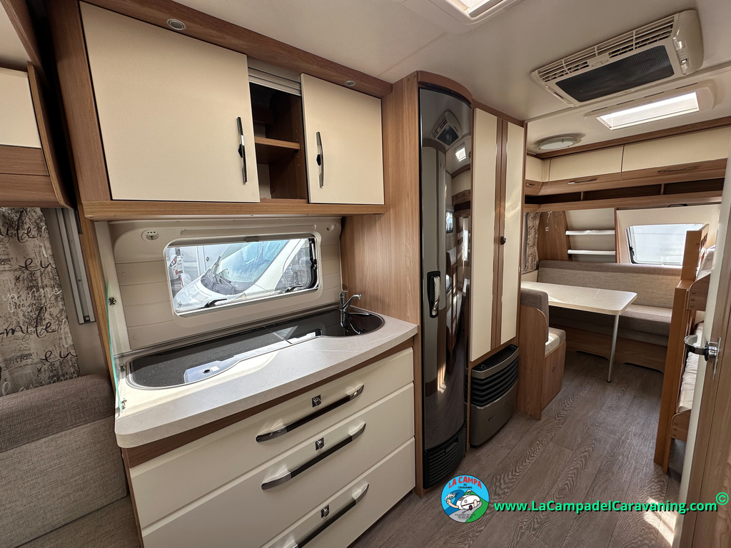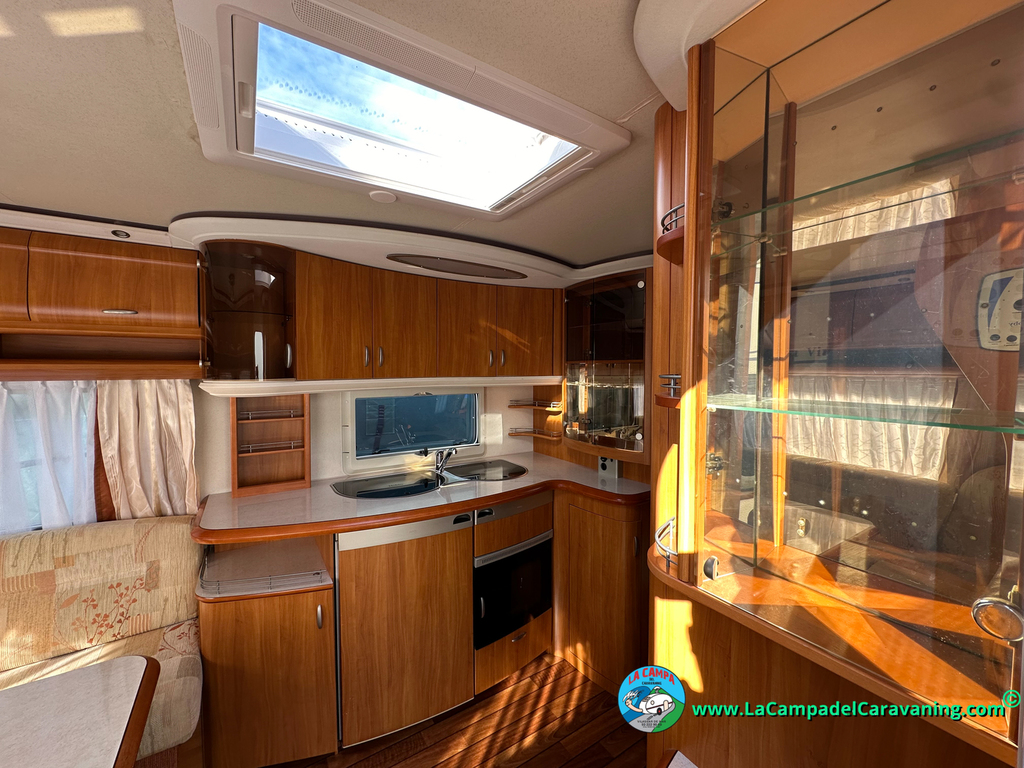 Nevera trivalente con congelador, WC químico, ducha semindependiente, antena TV, microondas, calefaccion con distribución por conductos, 2 claraboyas (1 panorámica), mosquitera en puerta de entrada, estabilizador Alko.