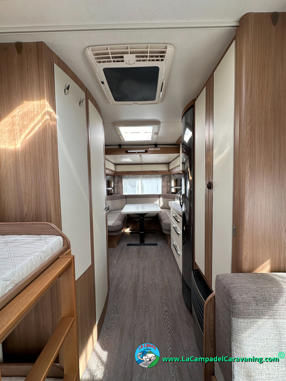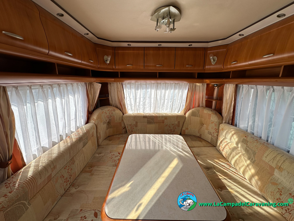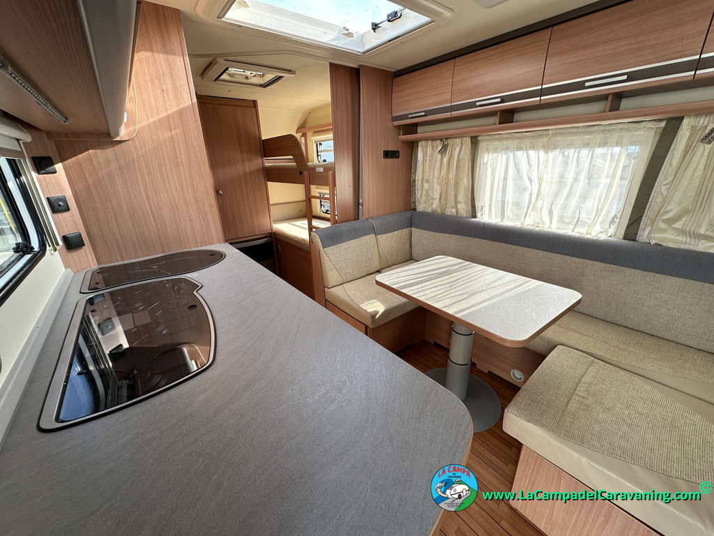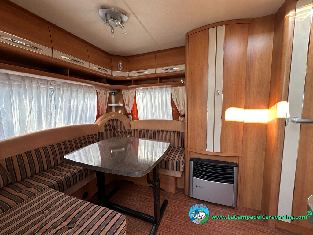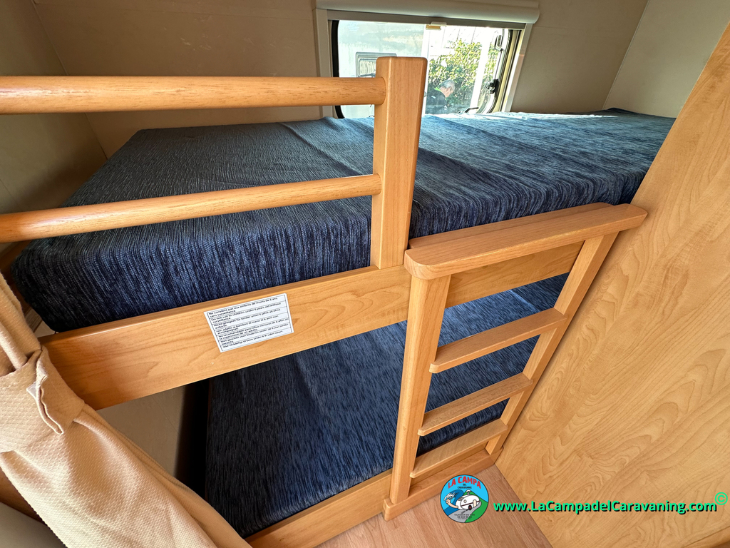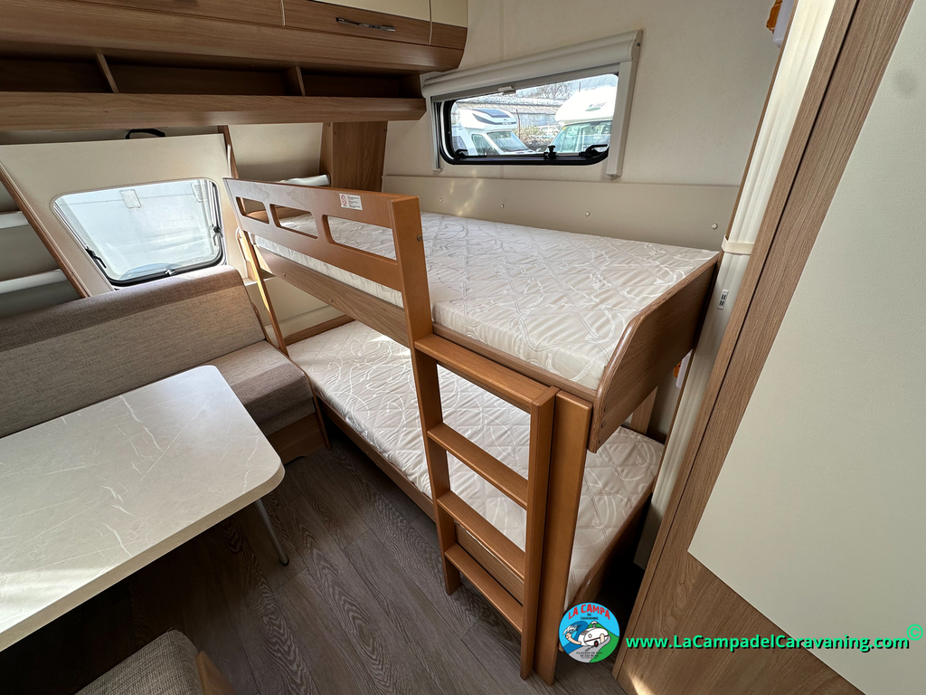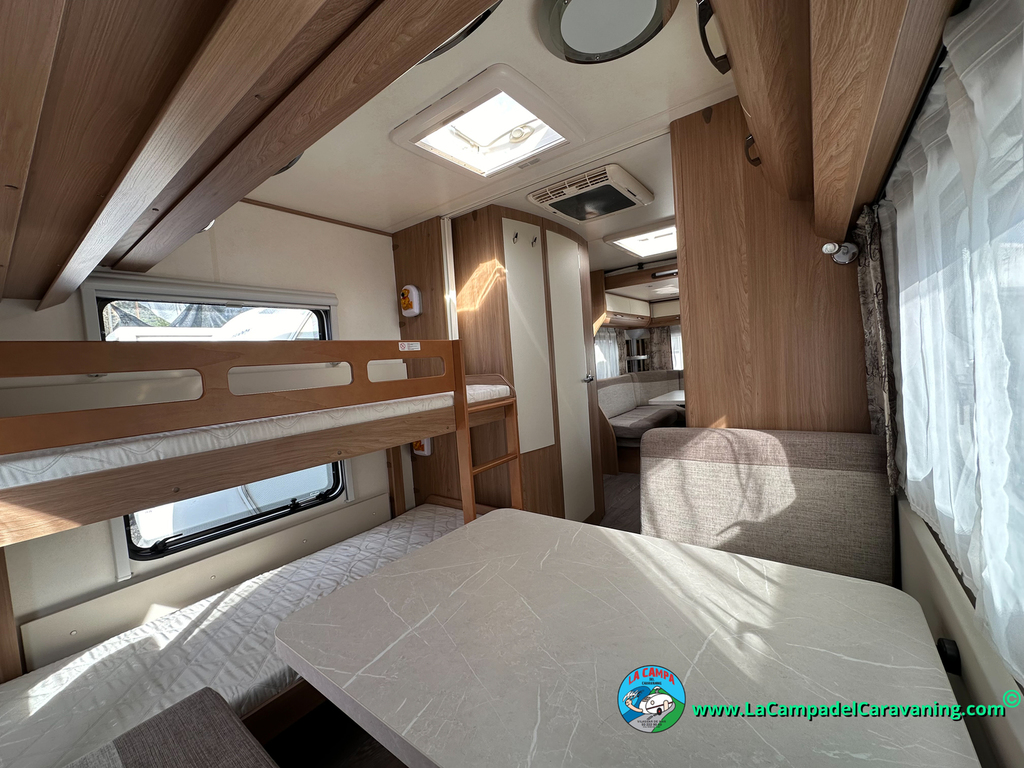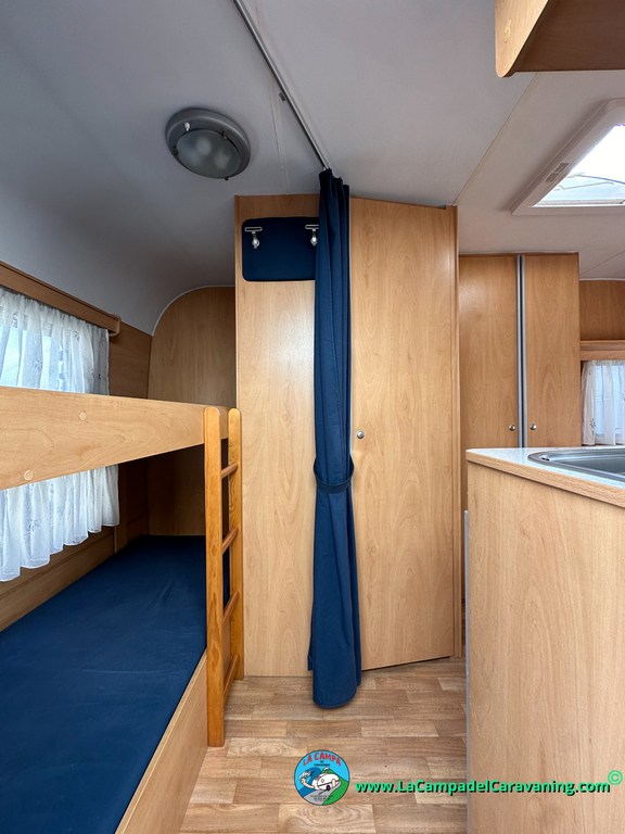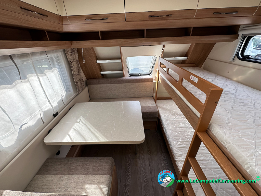 Nevera trivalente con congelador, WC químico, ducha semindependiente, antena TV, microondas, calefaccion con distribución por conductos, 2 claraboyas (1 panorámica), mosquitera en puerta de entrada, estabilizador Alko.