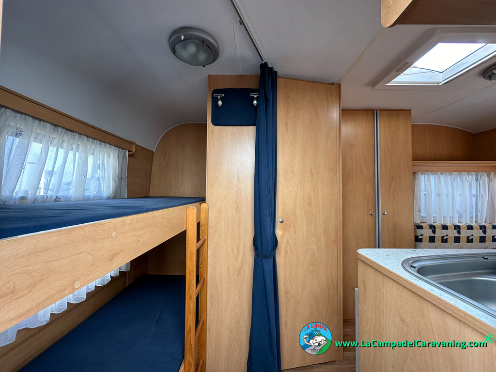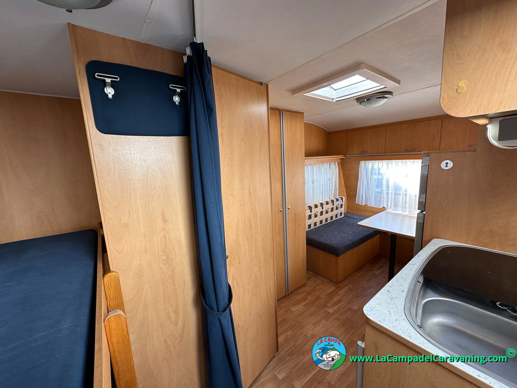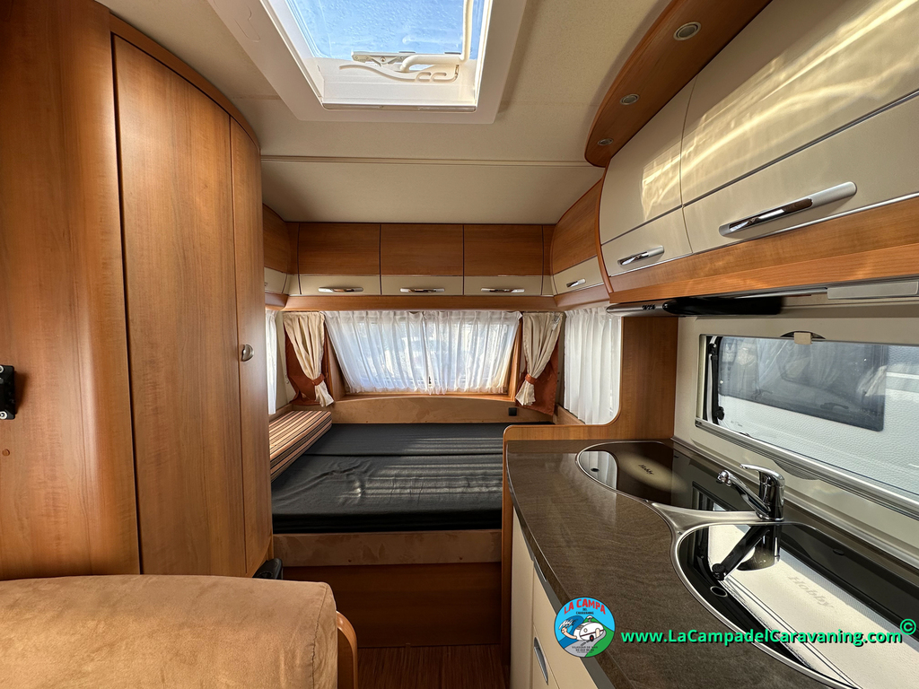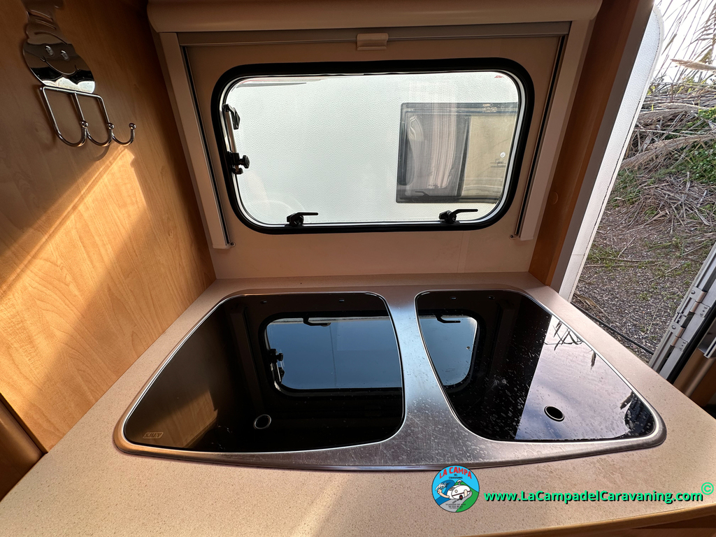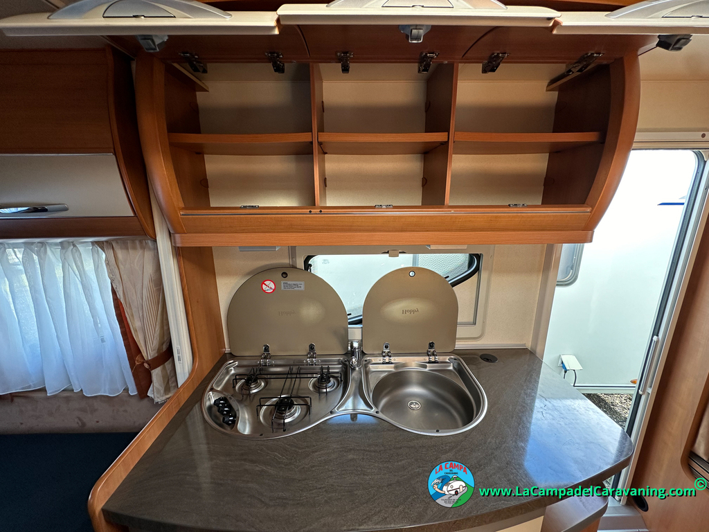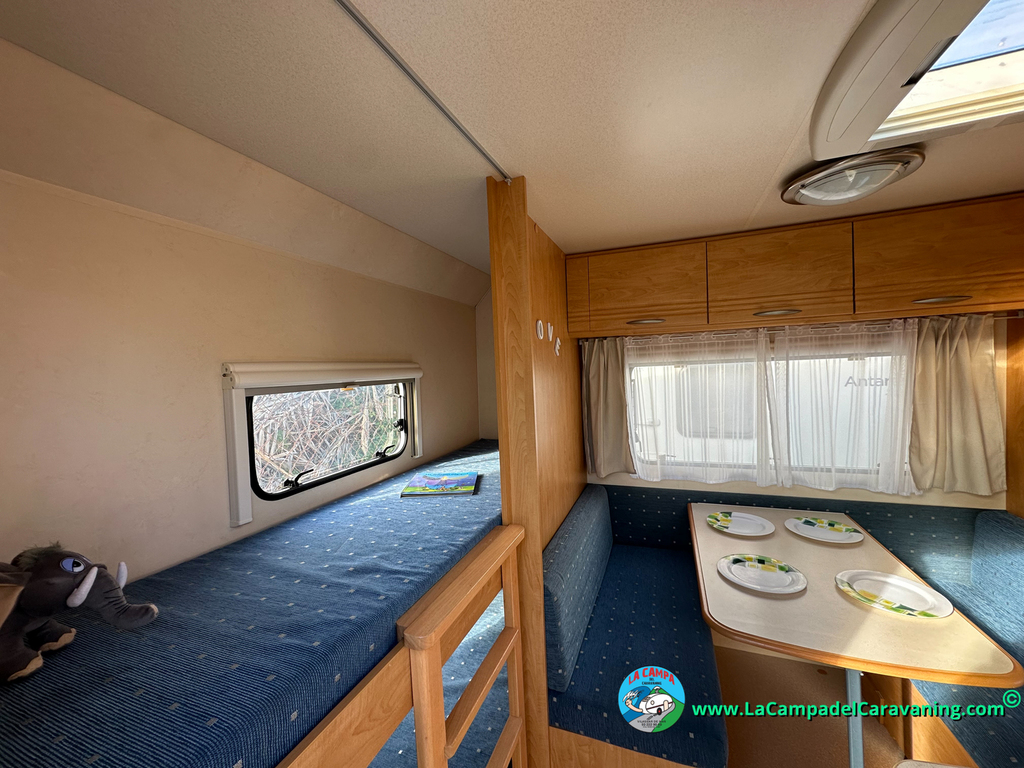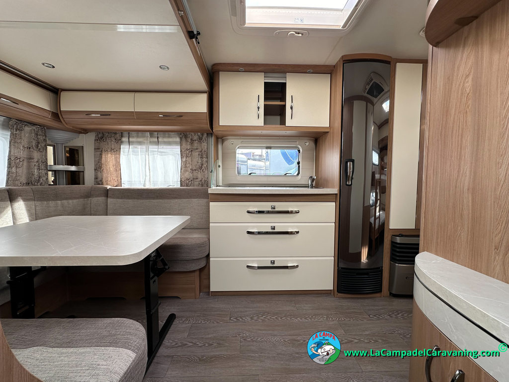 Nevera trivalente con congelador, WC químico, ducha semindependiente, antena TV, microondas, calefaccion con distribución por conductos, 2 claraboyas (1 panorámica), mosquitera en puerta de entrada, estabilizador Alko.