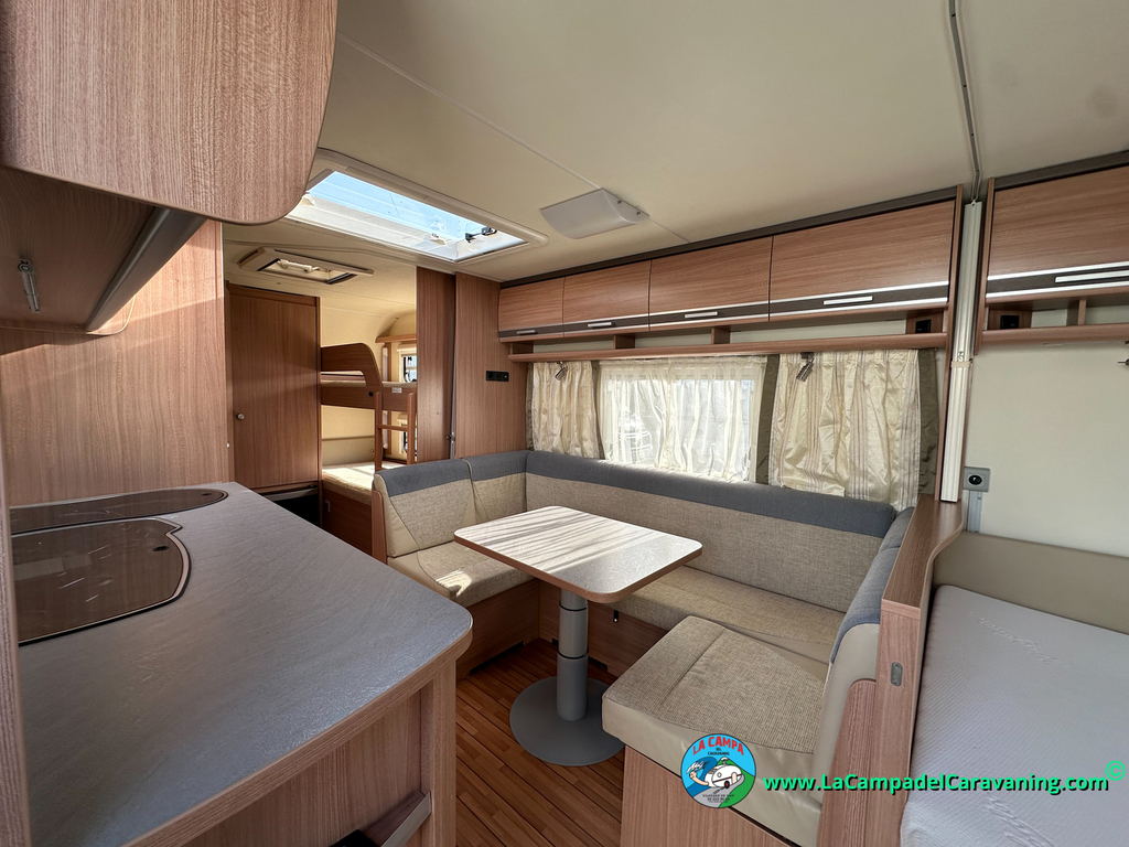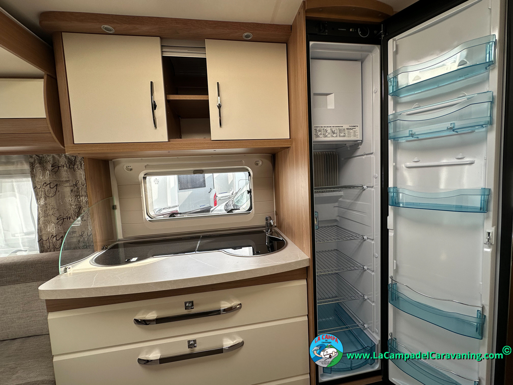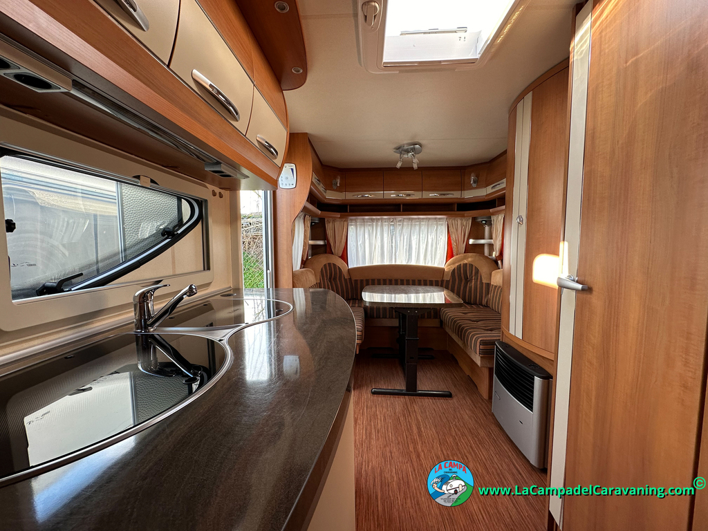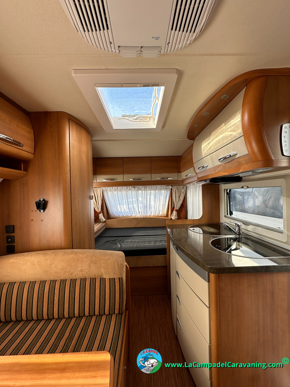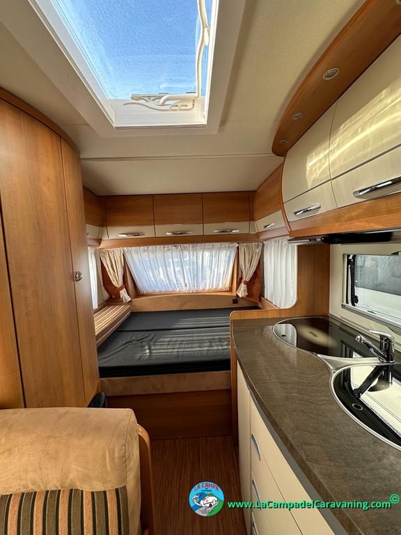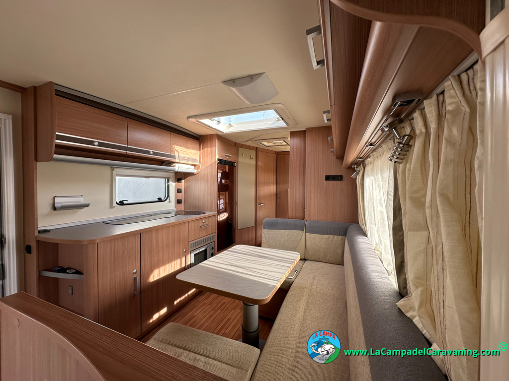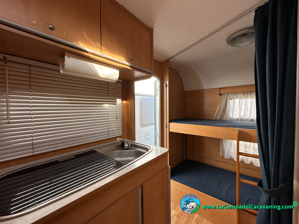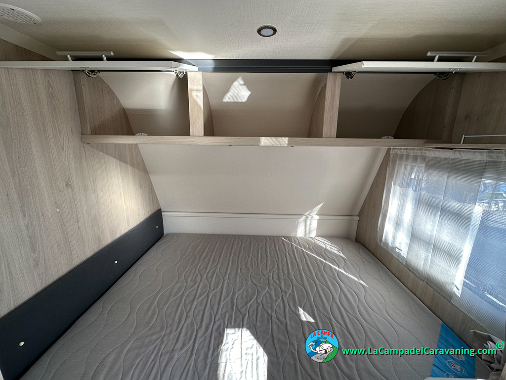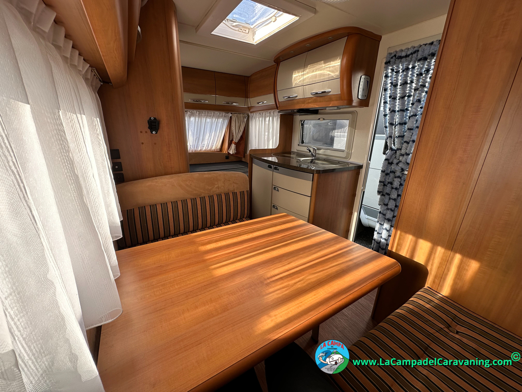Nevera trivalente con congelador, WC químico, ducha semindependiente, antena TV, microondas, calefaccion con distribución por conductos, 2 claraboyas (1 panorámica), mosquitera en puerta de entrada, estabilizador Alko.