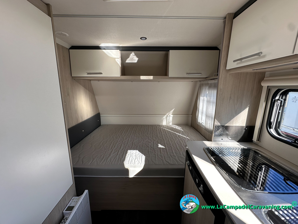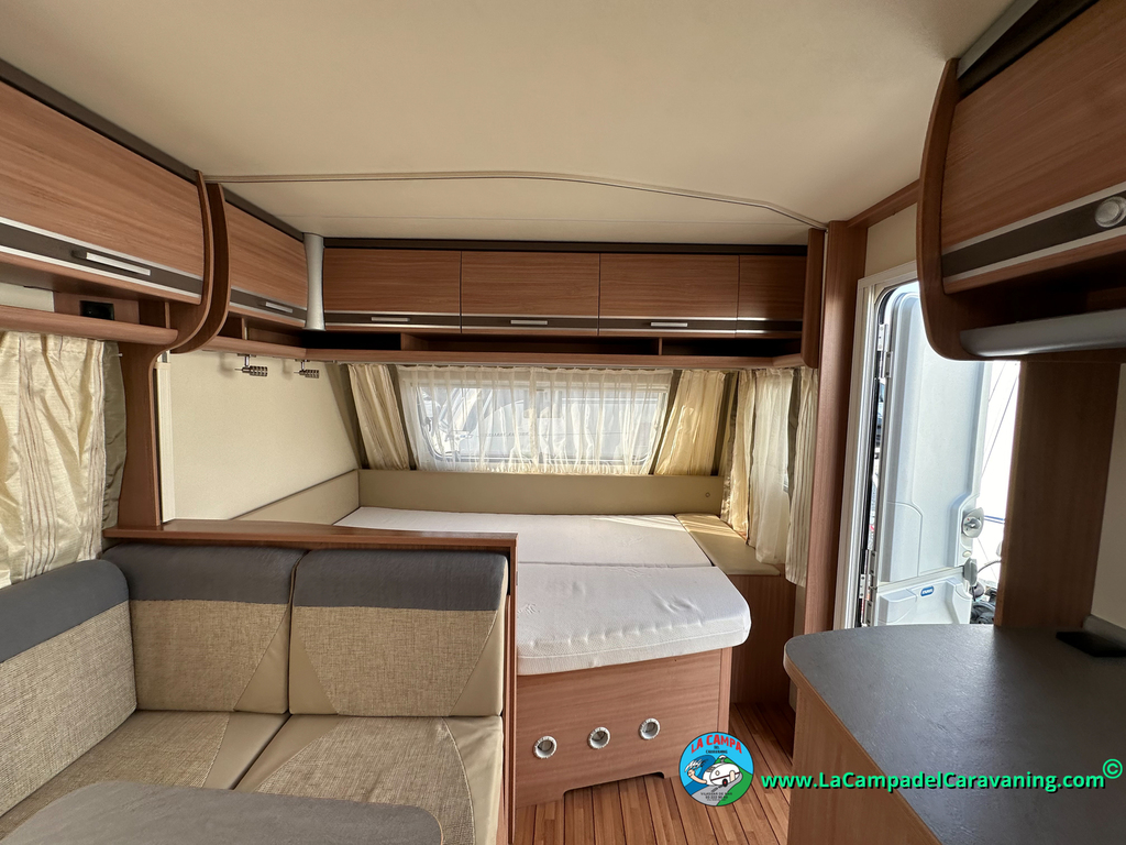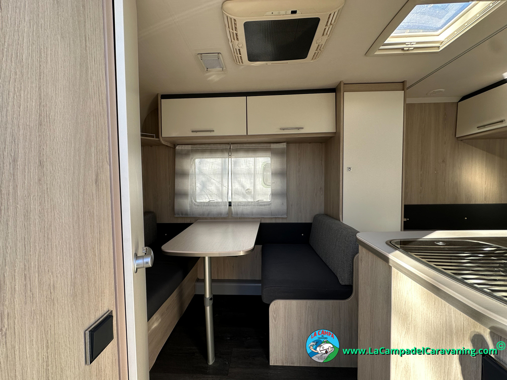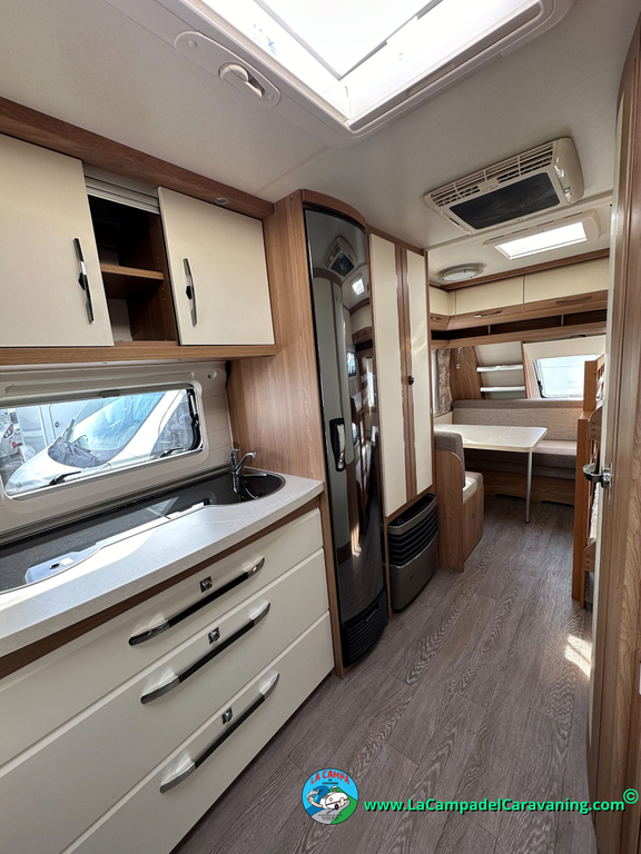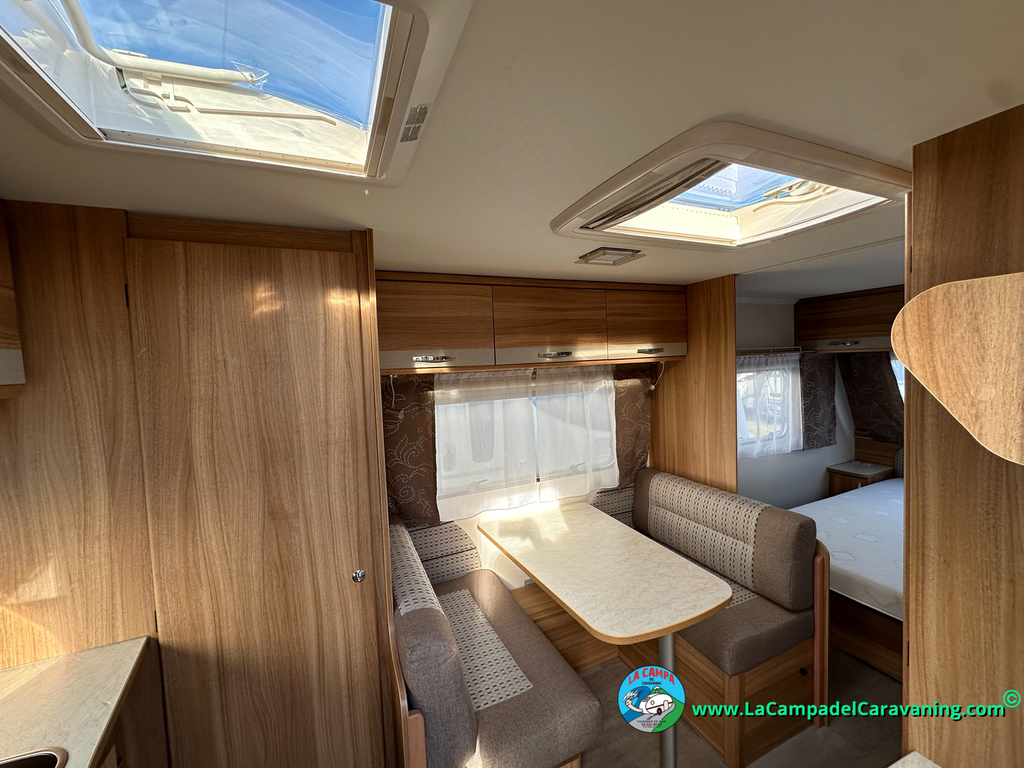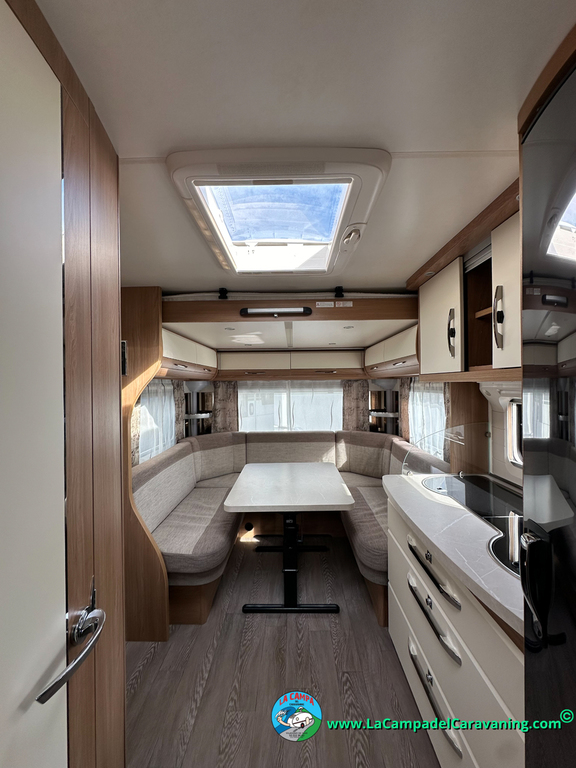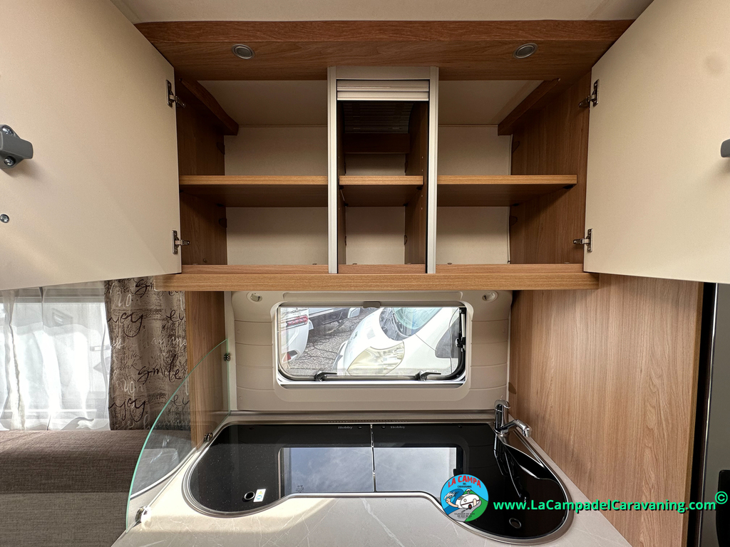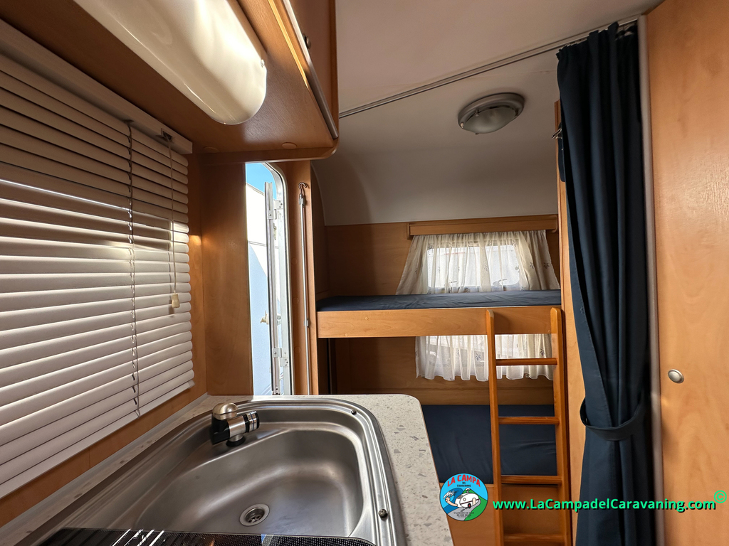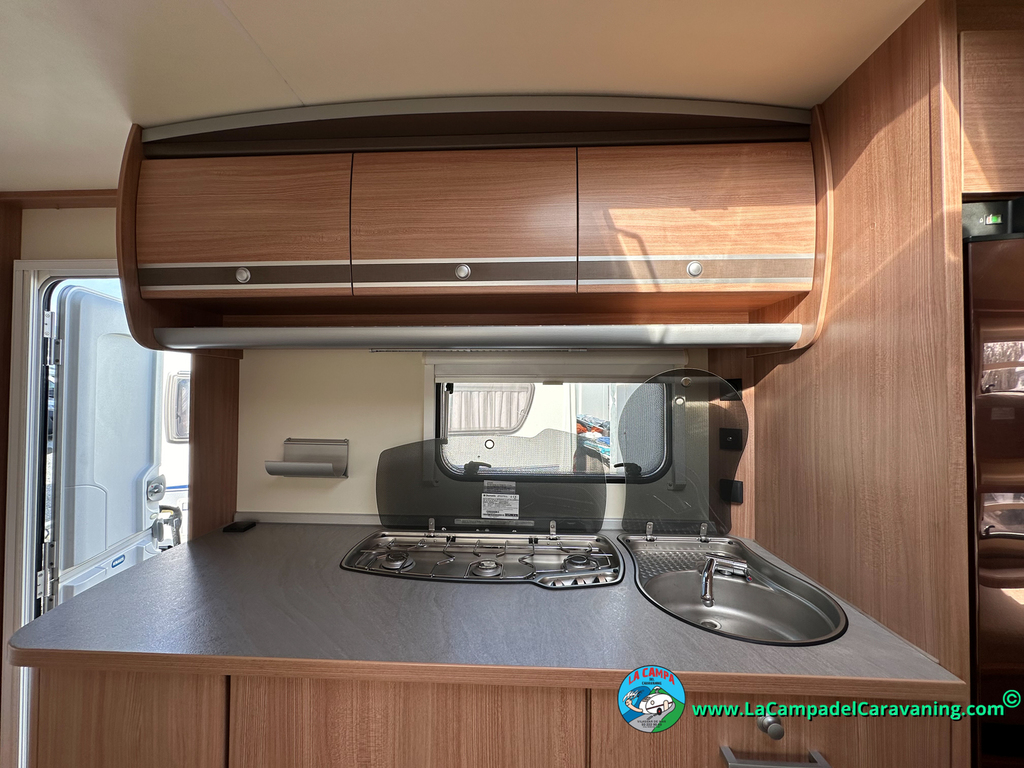 Nevera trivalente con congelador, WC químico, ducha semindependiente, antena TV, microondas, calefaccion con distribución por conductos, 2 claraboyas (1 panorámica), mosquitera en puerta de entrada, estabilizador Alko.