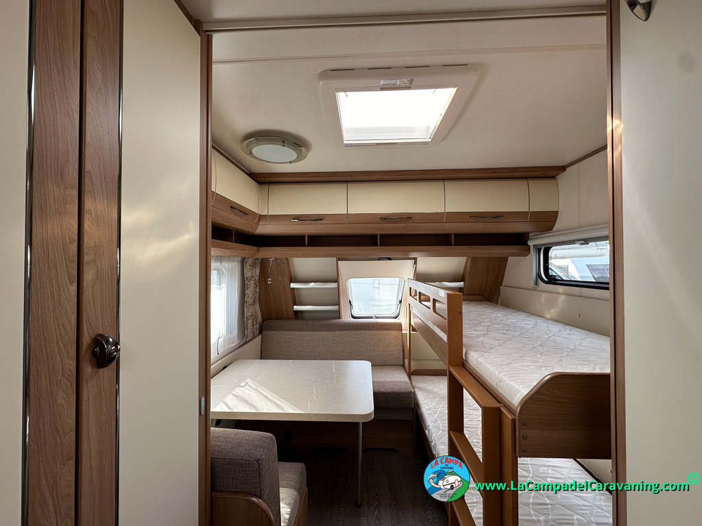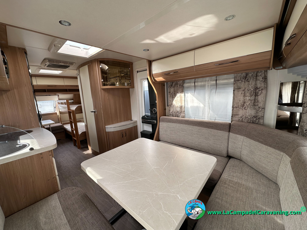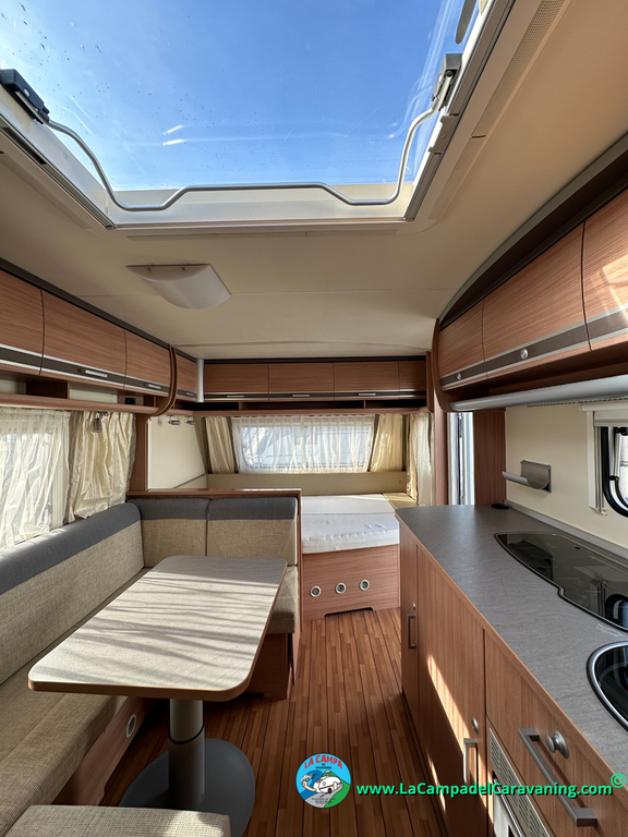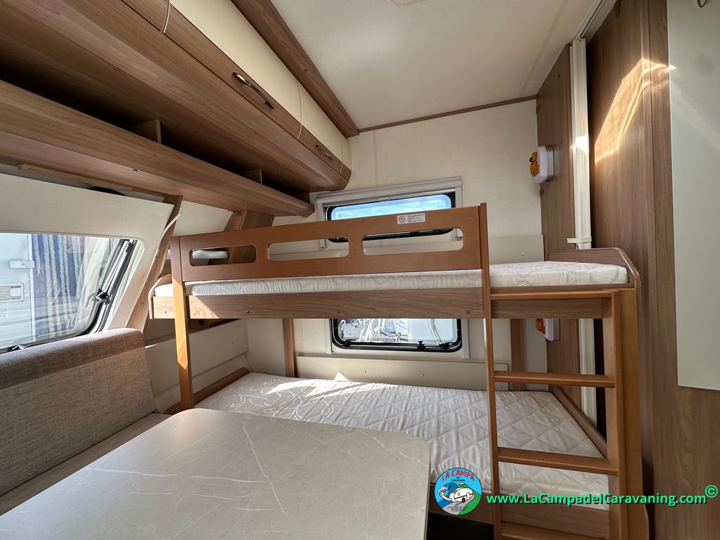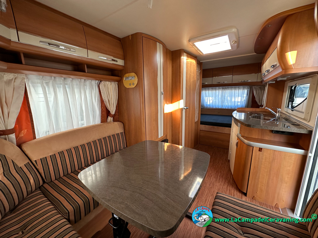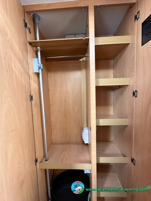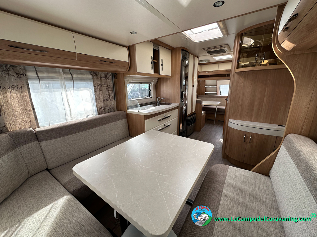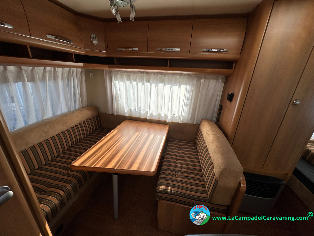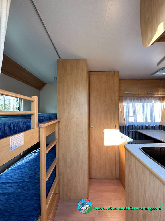 Nevera trivalente con congelador, WC químico, ducha semindependiente, antena TV, microondas, calefaccion con distribución por conductos, 2 claraboyas (1 panorámica), mosquitera en puerta de entrada, estabilizador Alko.
