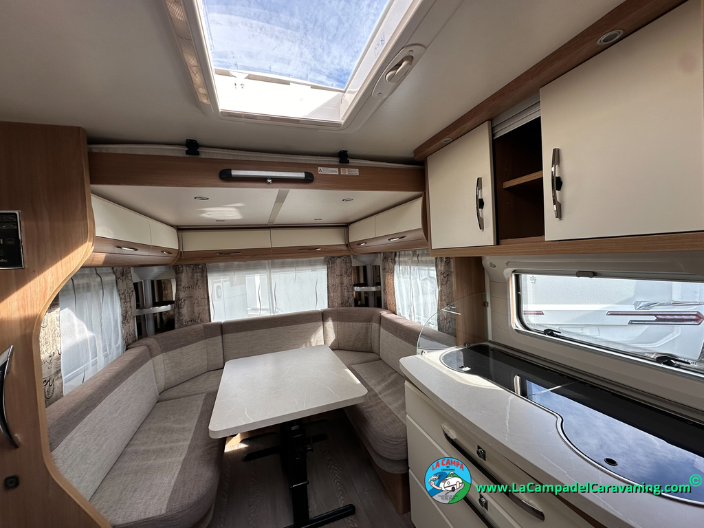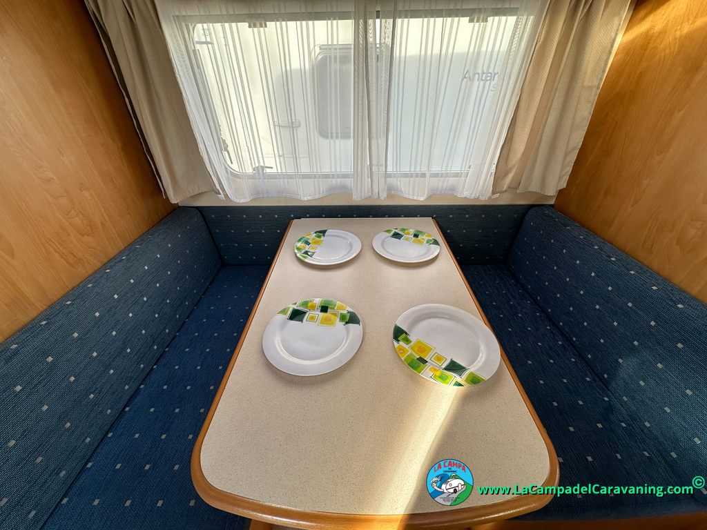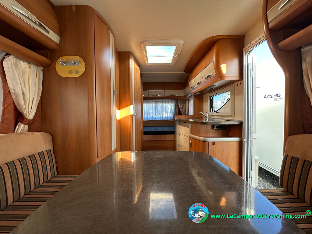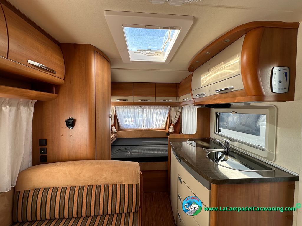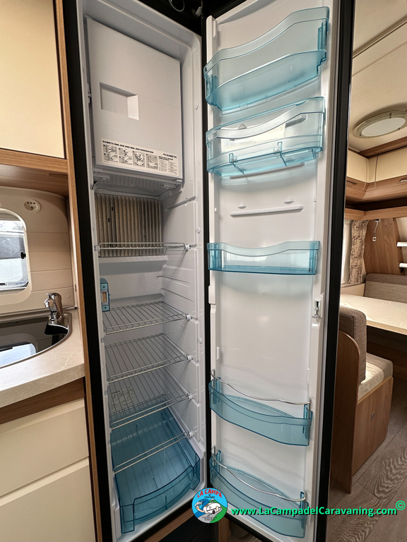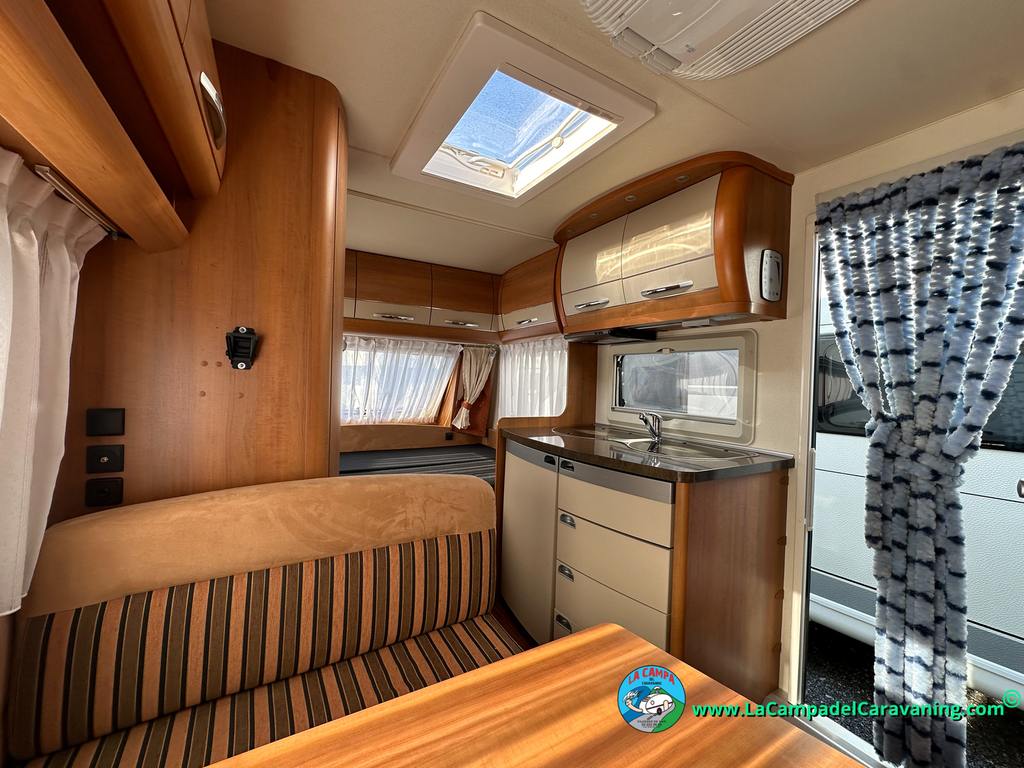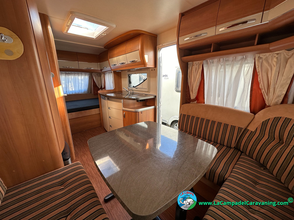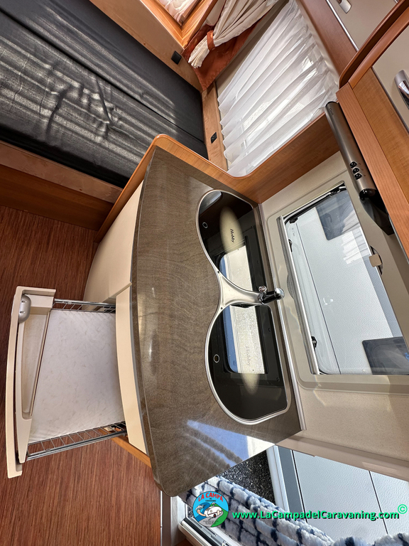Nevera trivalente con congelador, WC químico, ducha semindependiente, antena TV, microondas, calefaccion con distribución por conductos, 2 claraboyas (1 panorámica), mosquitera en puerta de entrada, estabilizador Alko.