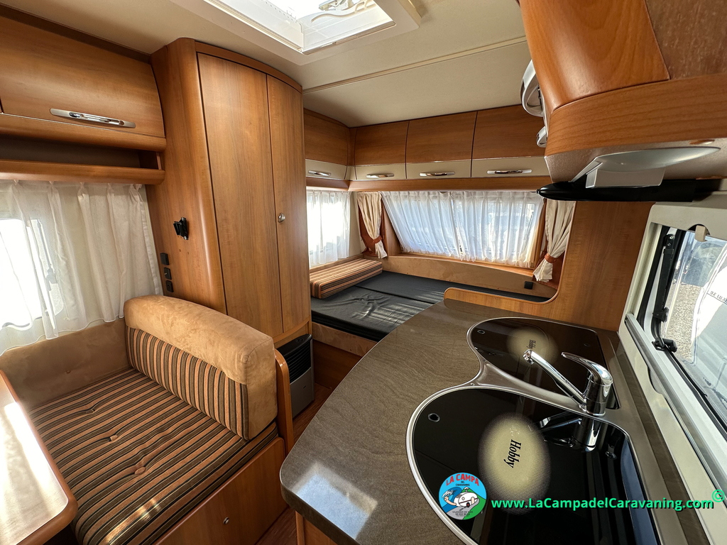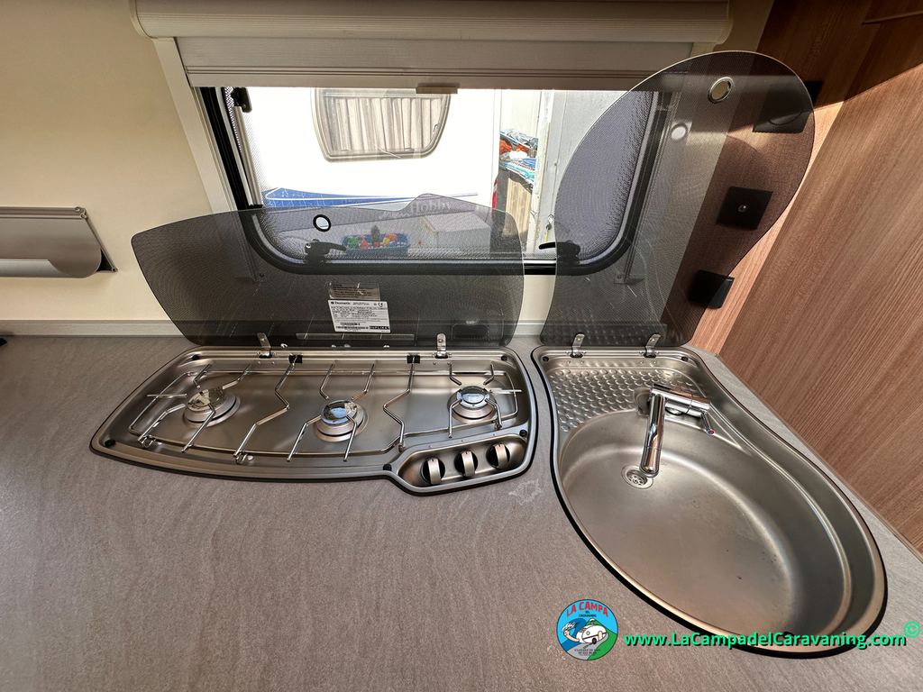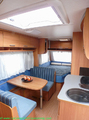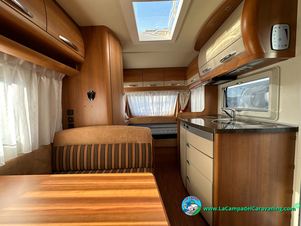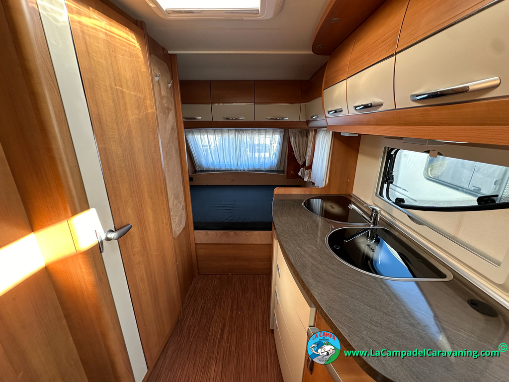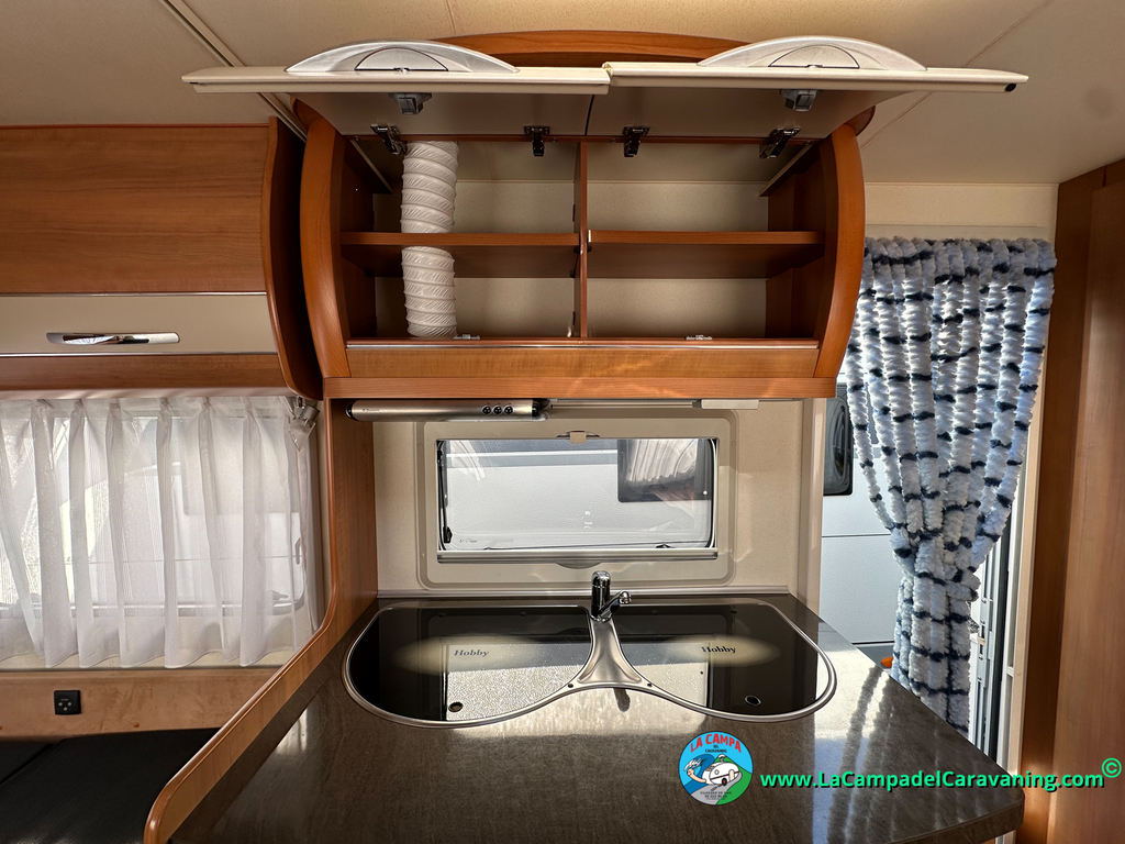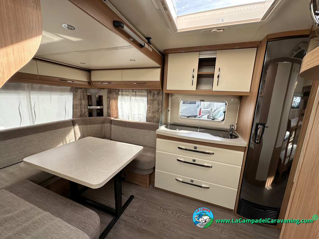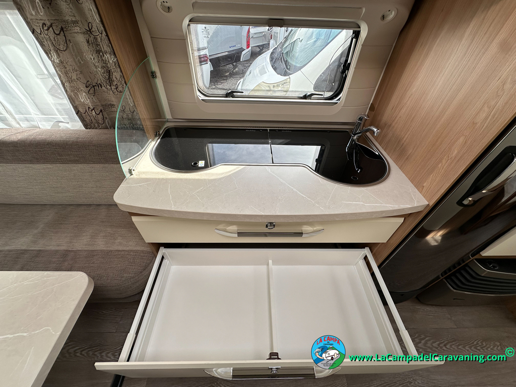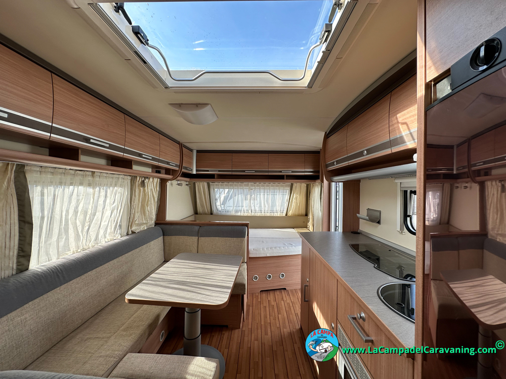 Nevera trivalente con congelador, WC químico, ducha semindependiente, antena TV, microondas, calefaccion con distribución por conductos, 2 claraboyas (1 panorámica), mosquitera en puerta de entrada, estabilizador Alko.