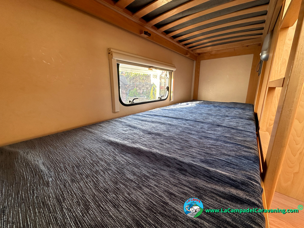 1 Cama fija suite con colchón en forma de canapé y arcón con acceso desde el exterior.